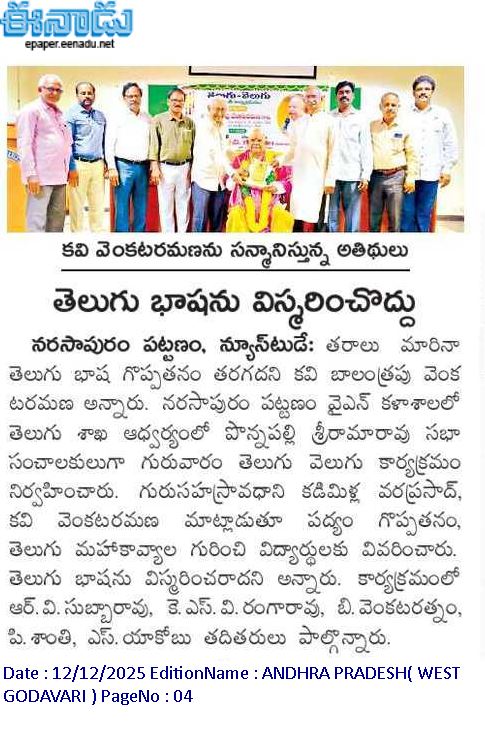Notice Regarding the General Governing Body Meeting of the Sri Y. N. College Committee Scheduled on September 28, 2025, for the Enhancement of the Life Membership Fee Click Here